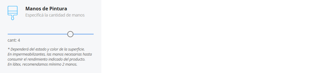 En impermeabilizantes, las manos necesarias hasta consumir el rendimiento indicado del producto.